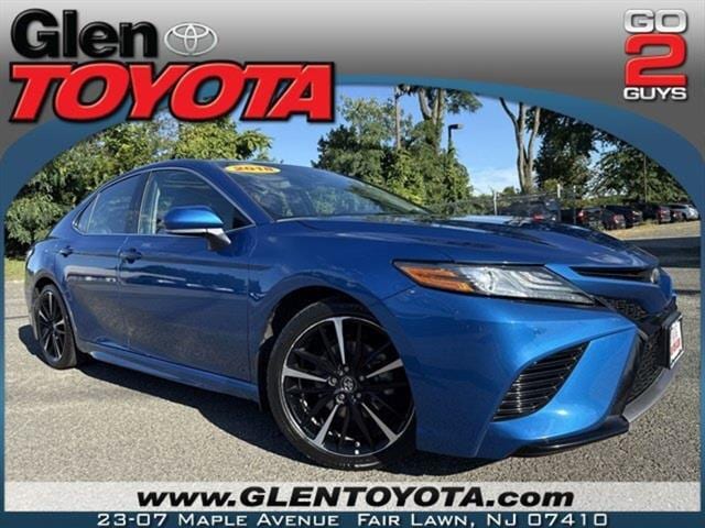 Experience sporty sophistication in this Blue 2018 Toyota Camry XSE 4dr Sedan. Enjoy a powerful 2.5L I4 engine with 8-speed automatic transmission and sport-tuned suspension for an exhilarating drive. Stay safe with advanced features such as front automatic emergency braking, pedestrian detection pre-collision warning, lane keeping assist, blind spot monitoring, rear cross traffic alert, and adaptive cruise control. The luxurious leather-trimmed seats are heated and power-adjustable for both driver and passenger, with lumbar support and memory settings. Tech-savvy drivers will love the 8-inch infotainment screen with Entune, Bluetooth, voice controls, Scout GPS Link, and integrated apps like iHeartRadio and Pandora. Other highlights include a panoramic glass roof, LED headlights and taillights, auto-dimming rearview mirror, and a stylish lip rear spoiler. Convenience abounds with proximity entry, push-button start, rearview camera, and multi-zone climate control. Meticulously maintained, this Camry XSE delivers comfort, style, and peace of mind-perfect for your daily commute or weekend getaways. Why Buy at Glen Toyota in Fair Lawn, NJContact Glen Toyota for your Toyota automotive needs! We have the latest Toyota models. Search our Pre-Owned Toyota inventory and contact our internet sales department for current specials or to schedule a test drive. Located in Fair Lawn, NJ, our internet sales team provides excellent savings to customers in the Fair Lawn, Paramus, Clifton, and Garfield areas. Contact our dealership online for an internet quote. Includes: Toyota Silver Certified Program