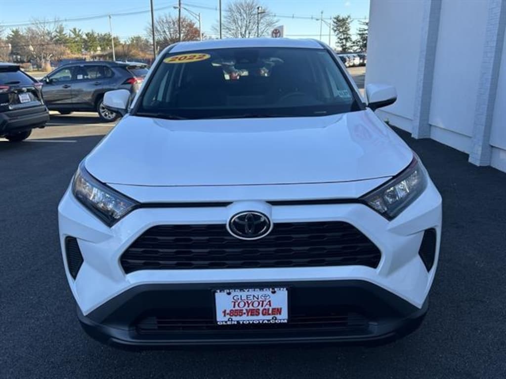Discover the impressive 2022 Toyota RAV4 AWD LE, finished in classic white and with only 3,020 miles. This SUV is ready for adventure with all-wheel drive, a 2.5L I4 engine delivering 203hp, and an 8-speed automatic transmission with Sequential Shift Mode. Enjoy peace of mind with advanced safety features, including Front Automatic Emergency Braking, Pedestrian Detection Pre-collision Warning System, Lane Keeping Assist, and Adaptive Cruise Control. Stay seamlessly connected with Apple CarPlay, Android Auto, Amazon Alexa compatibility, and Toyota Connected Services. The RAV4 LE offers a spacious interior with a 7-inch touchscreen, rearview camera, Bluetooth, and multiple USB outlets. Additional highlights include LED headlights, rear privacy glass, roof rails, and a 60/40 split folding rear seat for flexible cargo space. Experience reliability, comfort, and advanced technology in this low-mileage Toyota RAV4-perfect for daily drives or weekend getaways. Why Buy at Glen Toyota in Fair Lawn, NJContact Glen Toyota for your Toyota automotive needs! We have the latest Toyota models. Search our Pre-Owned Toyota inventory and contact our internet sales department for current specials or to schedule a test drive. Located in Fair Lawn, NJ, our internet sales team provides excellent savings to customers in the Fair Lawn, Paramus, Clifton, and Garfield areas. Contact our dealership online for an internet quote. Certified Pre-Owned