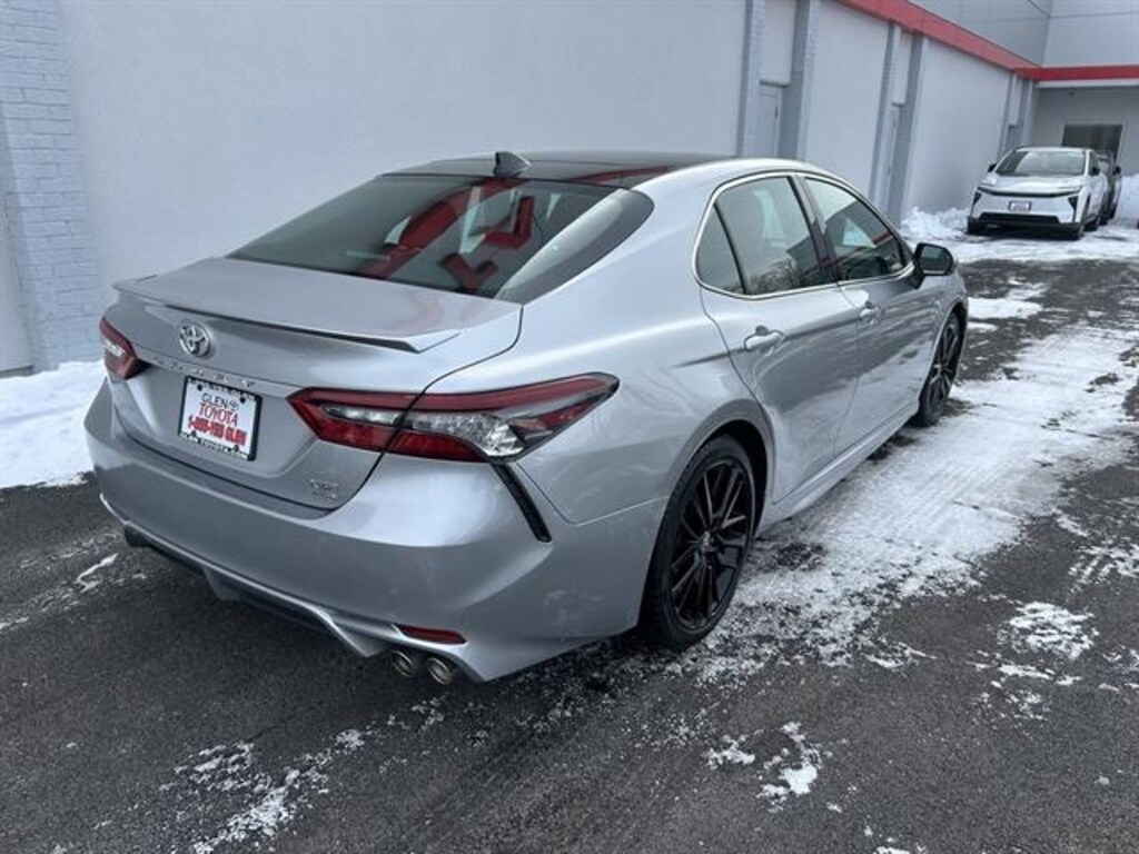 Experience sporty sophistication and all-weather confidence with this Silver 2021 Toyota Camry XSE AWD. The XSE trim blends dynamic style with advanced technology, featuring a robust 2.5L I4 engine paired to an 8-speed automatic transmission and on-demand all-wheel drive for enhanced performance. Enjoy premium comfort with leather-trimmed seats, heated front seats, dual-zone automatic climate control, and a panoramic glass roof. Stay connected and entertained with a 9-inch touchscreen, Apple CarPlay, Android Auto, Amazon Alexa compatibility, Bluetooth, SiriusXM, and Wi-Fi hotspot. Drive with peace of mind thanks to Toyota Safety Sense, including adaptive cruise control, lane keeping assist, blind spot monitoring, front and pedestrian emergency braking, and a rearview camera. Additional highlights include a wireless charging pad, power-adjustable front seats, push-button start, sport-tuned suspension, and stylish quad-tip exhaust. This Camry XSE AWD delivers reliability, comfort, and advanced safety in a sleek package. Contact us today to schedule your test drive! Why Buy at Glen Toyota in Fair Lawn, NJContact Glen Toyota for your Toyota automotive needs! We have the latest Toyota models. Search our Pre-Owned Toyota inventory and contact our internet sales department for current specials or to schedule a test drive. Located in Fair Lawn, NJ, our internet sales team provides excellent savings to customers in the Fair Lawn, Paramus, Clifton, and Garfield areas. Contact our dealership online for an internet quote. Certified Pre-Owned