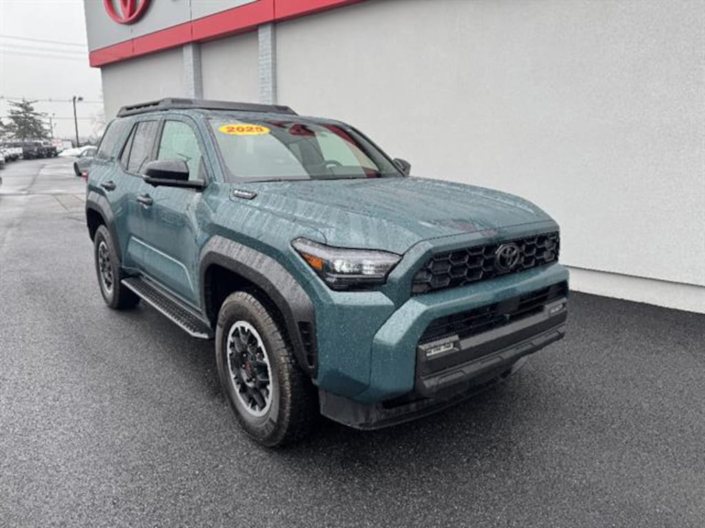 Experience adventure in the 2025 Toyota 4Runner 4x4 TRD Off-Road Premium HV, finished in striking Dark Green and with only 76 miles on the odometer. This SUV is built for both comfort and capability, featuring a powerful 2.4L Hybrid Turbo engine (326hp/465 lb-ft) paired with an 8-speed automatic transmission and advanced 4X4 system. Enjoy cutting-edge technology with a massive 14-inch Toyota Audio Multimedia screen, wireless Apple CarPlay and Android Auto, JBL premium audio, and a navigation system with over-the-air map updates. Safety is paramount with a surround view camera, intersection pre-collision warning, lane keeping assist, adaptive cruise control, blind spot monitor with trailer coverage, and pedestrian detection. The TRD Off-Road Premium package adds monotube shocks, power moonroof, skid plates, and running boards for superior performance on any terrain. Inside, find heated/ventilated leatherette seats, customizable digital instrument cluster, and a removable Bluetooth speaker. Stay connected with Toyota Connected Services, Wi-Fi hotspot, and multiple USB-C outlets. Ready for towing with a receiver hitch and 7-pin wiring. Discover why the 2025 4Runner is the ultimate SUV for your next journey. Why Buy at Glen Toyota in Fair Lawn, NJContact Glen Toyota for your Toyota automotive needs! We have the latest Toyota models. Search our Pre-Owned Toyota inventory and contact our internet sales department for current specials or to schedule a test drive. Located in Fair Lawn, NJ, our internet sales team provides excellent savings to customers in the Fair Lawn, Paramus, Clifton, and Garfield areas. Contact our dealership online for an internet quote.